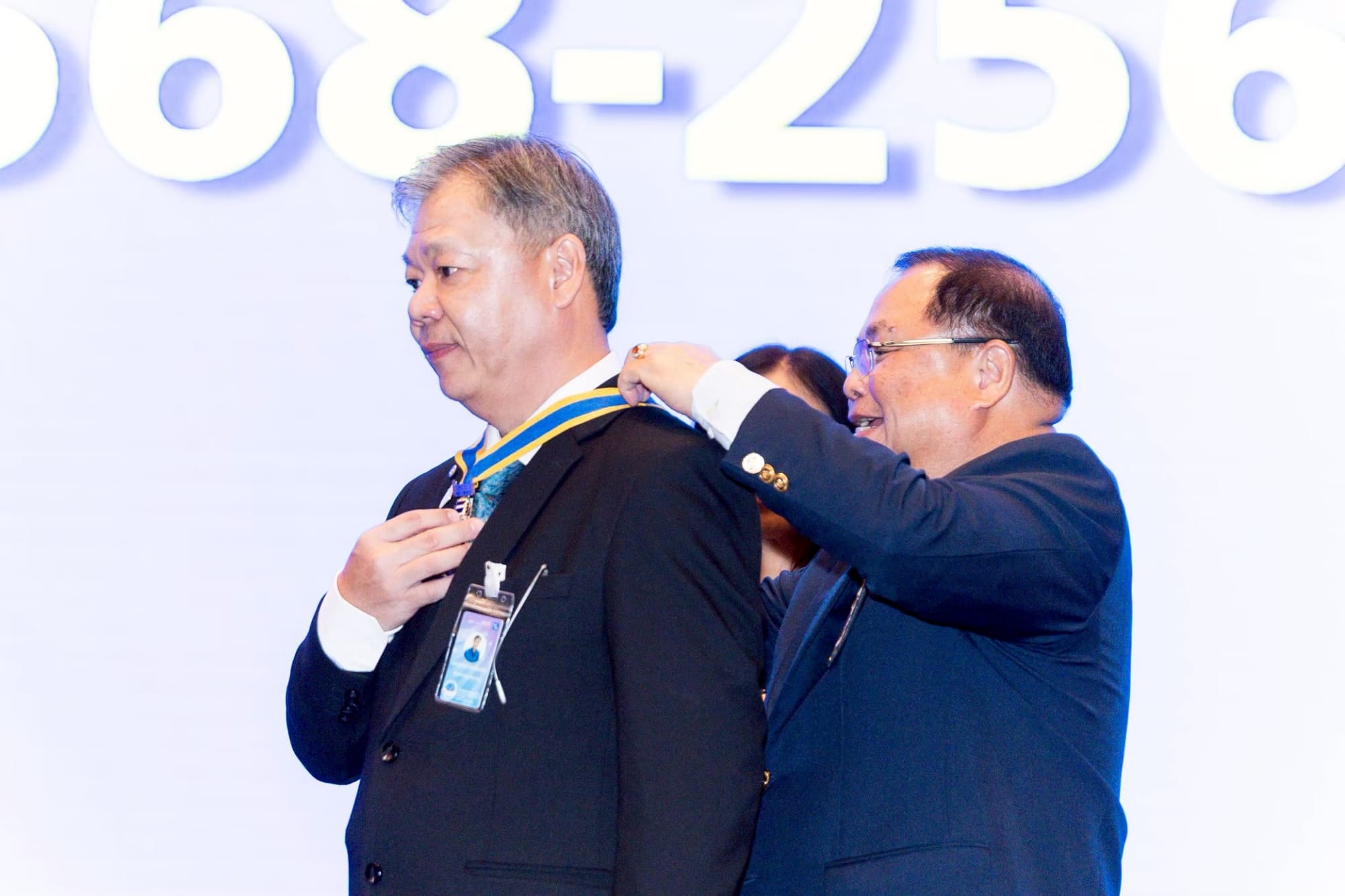 We also celebrated the achievements of our outgoing president, Rotarian Benyapa Wonnadechtadakul, whose leadership brought many projects to successful completion this year. And in a respectful, well-conducted ceremony, Rotarian Surapol Vessrodkit was officially installed as our new club president for 2025–2026, with the collar handover conducted by our district’s respected leaders.